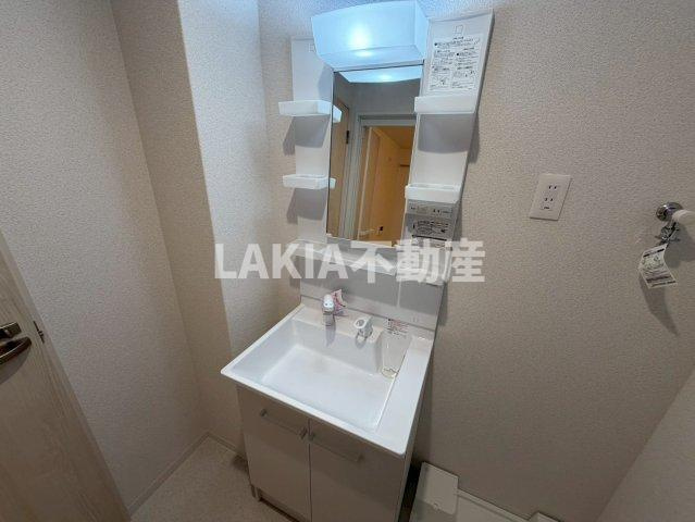 大きい鏡が搭載された独立洗面台となりますので、お出かけ前の準備がスムーズです。さらに、シンク下と鏡横に収納があり充実しているので化粧水などの化粧品関係や、洗剤や掃除用品などの日用品をたくさんストックしたい方でも脱衣所の収納スペースに困る事はありません。洗濯機置き場も洗面所内にございますが空間が広いため圧迫感を感じることはありません。家事の動線を考えて設計されているので、洗濯物をスムーズに済ませることが出来ます。