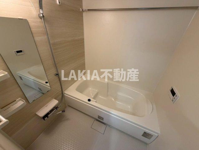 バスルームのご紹介です。バスルームは清潔感があり、落ち着いた雰囲気を演出し日々の疲れを癒すのに最適です。浴室乾燥機が完備されており、お風呂に入った後は湿気を効果的に排出するため、いつでも快適で清潔な空間を保つことができます。雨の日でも効率的に洗濯物を乾かすこともできます。シャンプードレッサーも完備しておりますのでご家族が多い方やこだわりのシャンプーなどもたくさん置けるので便利です。オートバスが採用されておりますので定量の湯を浴槽に張ったり、保温や追い焚きをすることができるので便利です。